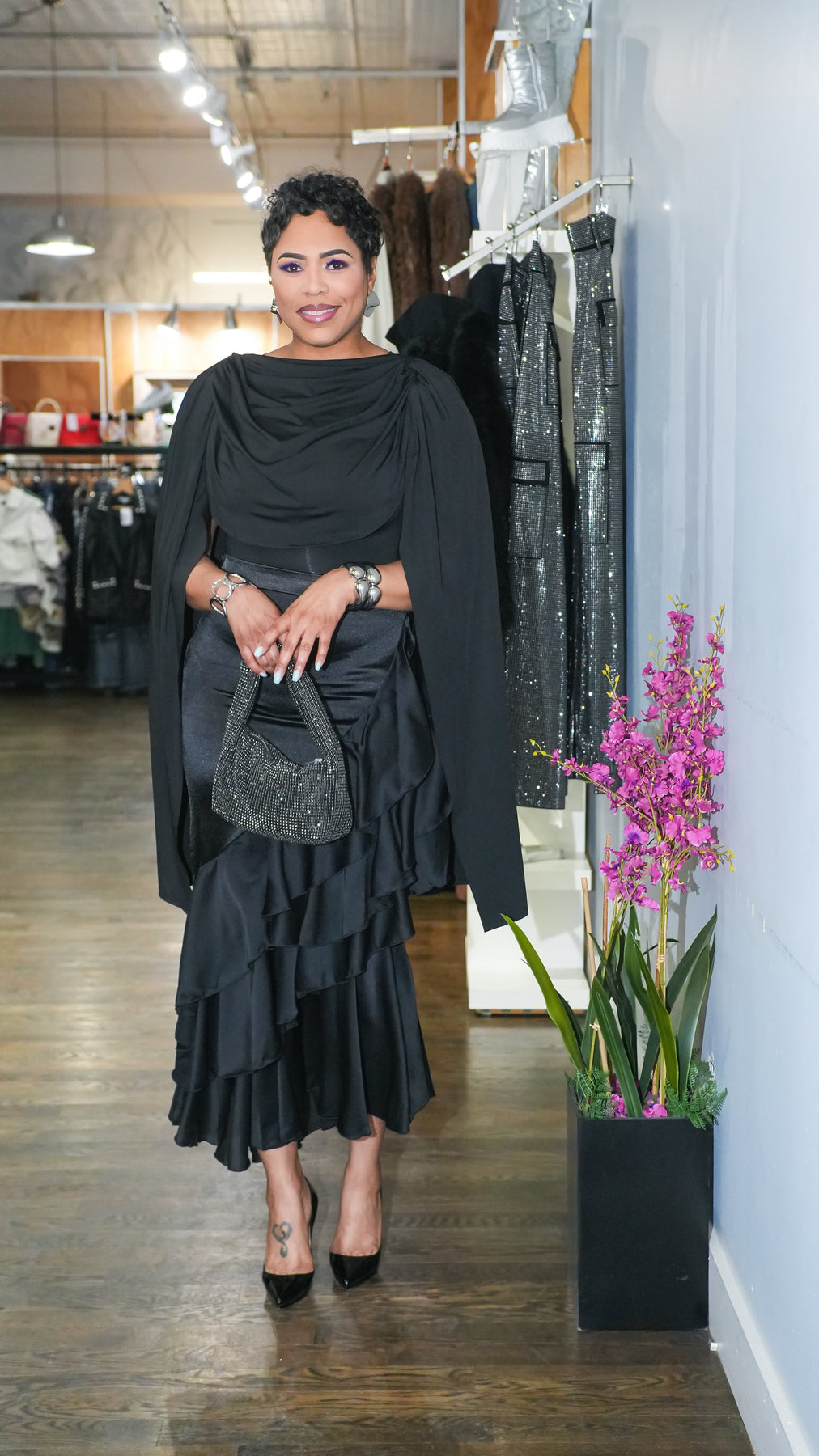 High Satin Ruffle Skirt