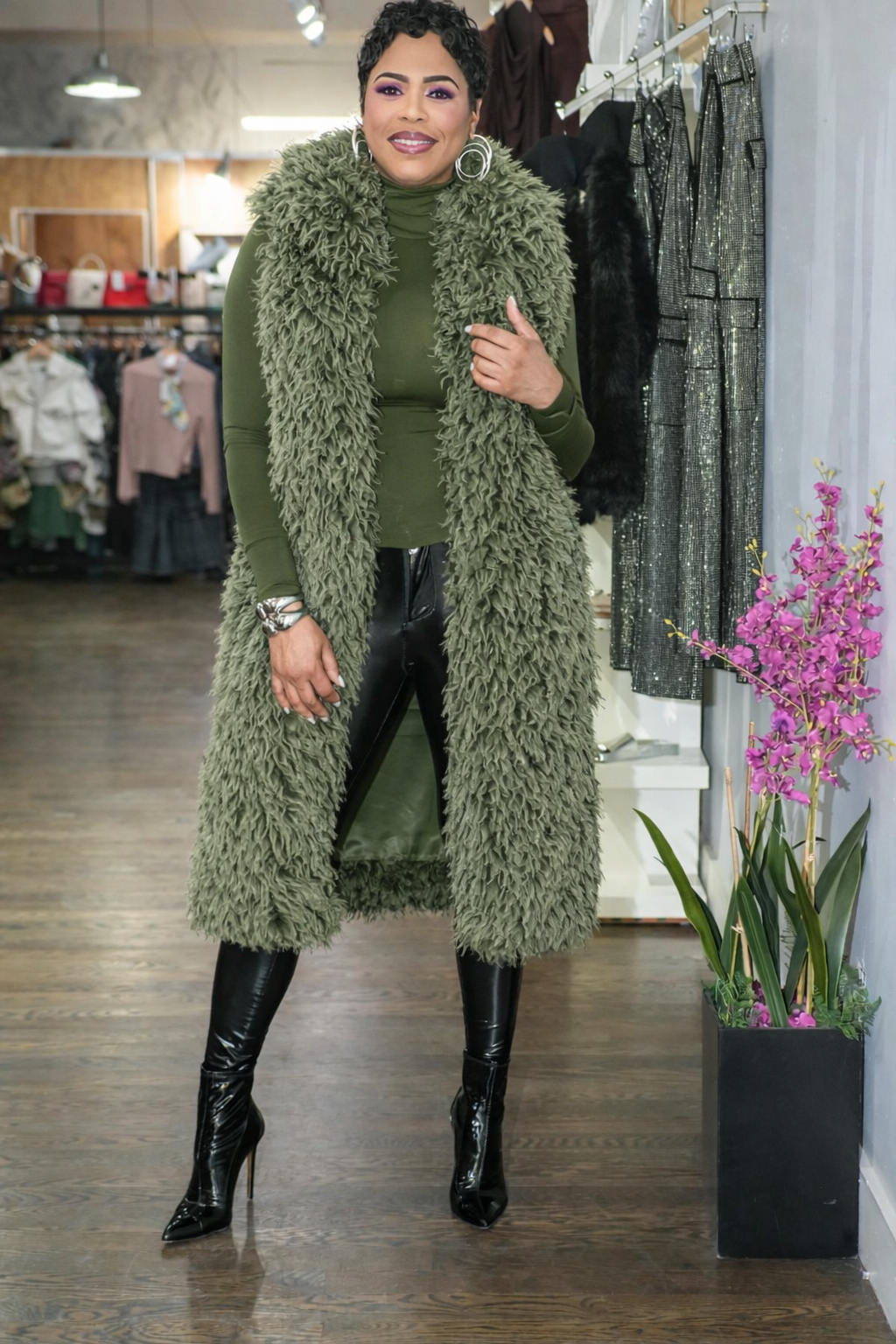 Wrap yourself in timeless elegance and luxury with our Mongolian Lamb Faux Fur Maxi Vest, crafted for those who appreciate both style and comfort. Made from high-quality faux fur that mimics the softness and warmth of genuine Mongolian lamb fur, this vest is a versatile addition to any wardrobe.