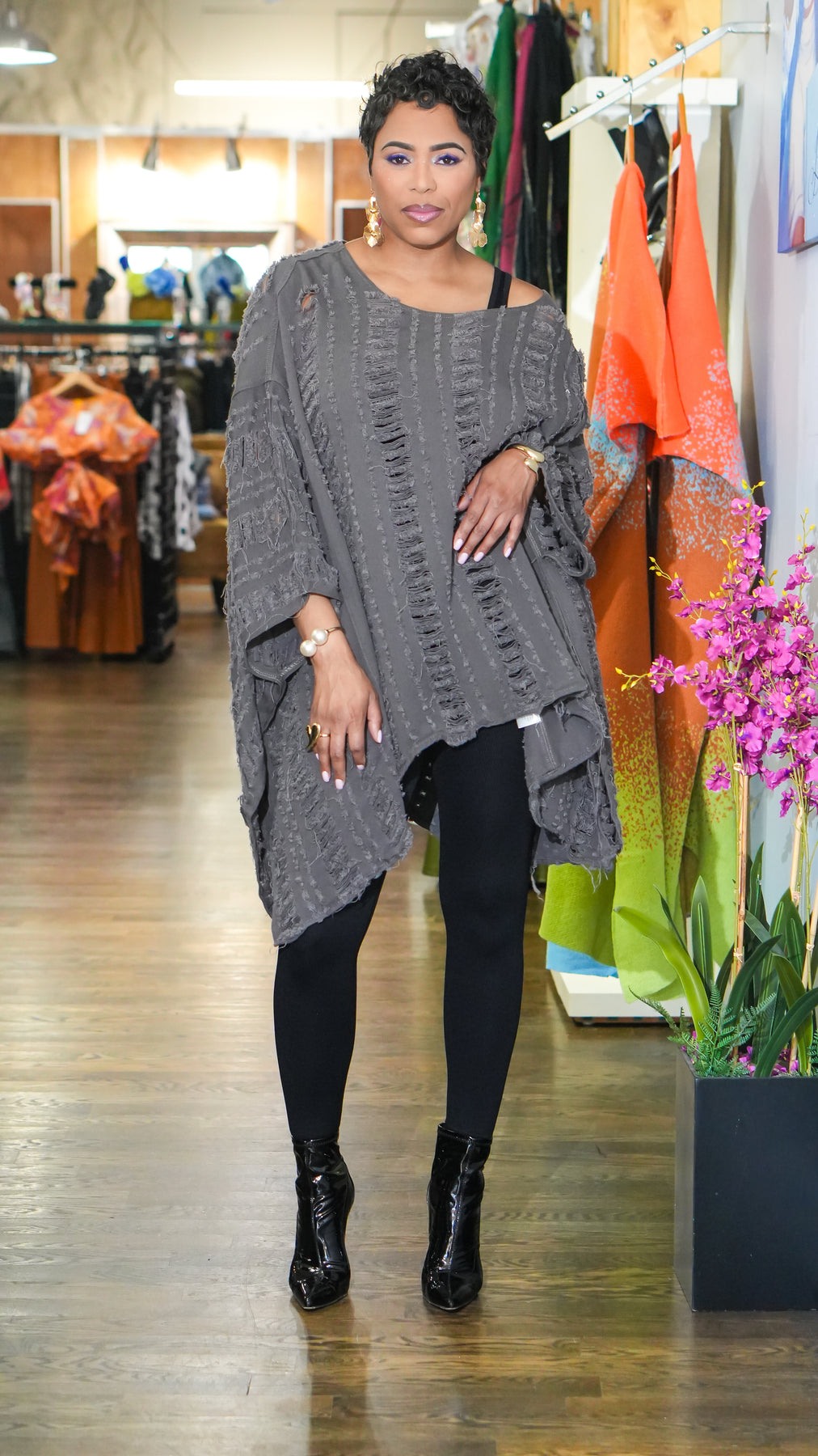 All Ripped Up Asymmetrical Oversized Top (Charcoal)