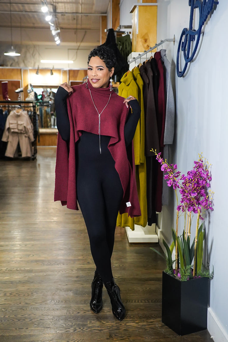 Elevate your wardrobe with our Hang Around Poncho Sweater. This versatile piece features an oversized fit and a stylish mock neck. Whether draped in the front or on the sides, the medium weight fabric will keep you comfortable and stylish. Perfect for any occasion, this one-size-fits-all sweater is a must-have for any fashion-forward individual.