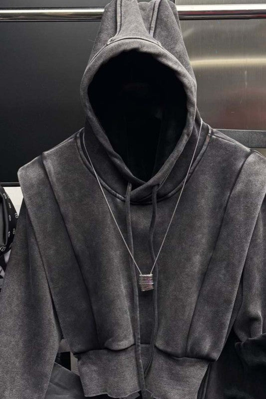 “Not your average lounge set — our Sculpted Streetwear Hoodie & Wide-Leg Pants are built for women who refuse to blend in. Crafted from washed charcoal fabric with bold seam detailing, the cropped hoodie features exaggerated padded shoulders for a powerful silhouette, while the high-waisted wide-leg pants bring drama and movement with every step. Designed with comfort at the core but edge in every detail, this set is where athleisure meets high fashion.”